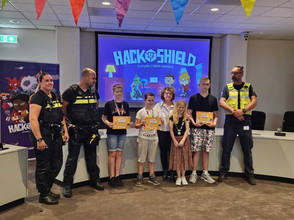 De drie Junior Cyber Agents deden onlangs mee aan een game. HackShield leert kinderen tussen de 8 en de 12 jaar spelenderwijs hoe ze zichzelf en hun omgeving wapenen tegen cybercriminaliteit. Via een spannend spel, beschikbaar via de app HackShield of joinghackshield.nl, worden de kinderen opgeleid tot Cyber Agents die online gevaar kunnen herkennen en voorkomen.