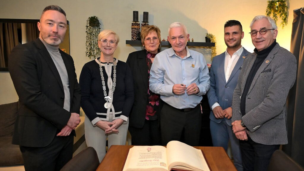 Burgemeester Petra Dassen-Housen heeft op donderdag 27 februari 2025 de Gouden Erespeld van Kerkrade uitgereikt aan fotograaf Peter Trompetter. De onderscheiding is bijzonder, omdat de Gouden Erespeld het nieuwe logo van de gemeente Kerkrade bevat.